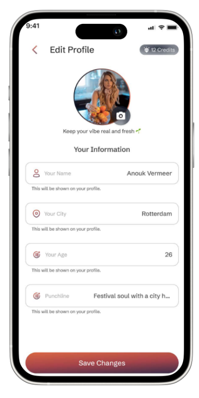 Set up your verified profile with your personality, not just your photos. Your selfie stays private.